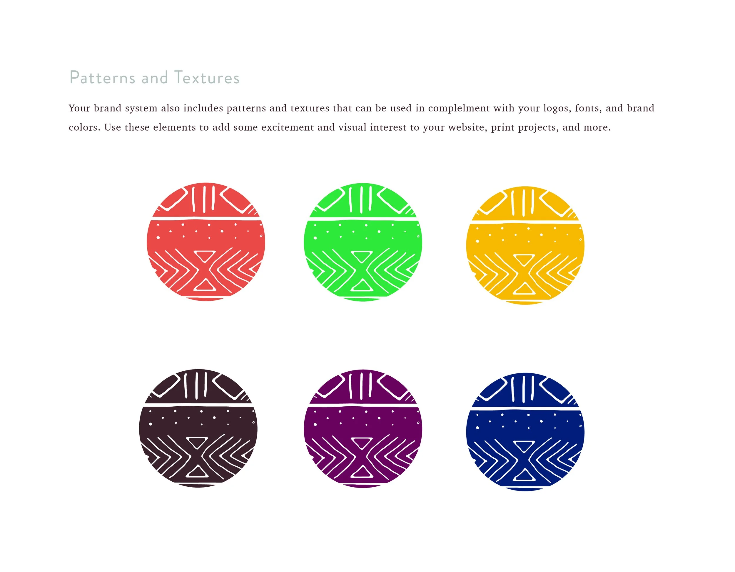 Because they have many sub-groups within the organization, we created a robust brand comprised of a family of cohesive logos. Their comprehensive brand guide also included brand messaging and imagery, along with a full color palette and complementary custom patterns and textures.